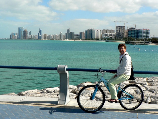 Aujourd'hui nous louons une voiture et direction Abu Dhabi (1h30 de route). Le trajet n'offre aucun intérêt. Abu Dhabi est située sur une île et ici tous les cm2 sont occupés. La ville est beaucoup plus petite que Dubaï, les immeubles beaucoup plus bas. La zone résidentielle semble très agréable car tout est fini (beaucoup de végétation). La zone portuaire est en travaux, le centre, à taille humaine n'offre que peu d'intérêt. Ici pas ou peu d'excentricités. Si une, et de taille, le mode de conduite des autochtones. Ici c'est le far-west ou plutôt le stock-car en grosses berlines. C'est à celui qui démarrera le plus vite, zigzaguera au milieu des autres, bref, dans notre petite voiture nous n'étions pas très à l'aise. Nous avons été témoins de plusieurs accidents en l'espace de quelques heures seulement. Finalement la conduite à Dubaï est plus raisonnable en dehors de refus de priorité ou des changements de file intempestifs.A part ça tout semble paisible dans cette ville. Le front de mer est très agréable. On peut y louer des vélos et se promener sur une belle piste cyclable. Au final, nous restons un peu sur notre faim. Certes la ville n'est pas l'immense chantier dubaïote, mais tout nous y semble trop sage et même un peu ennuyeux. Nous préférons la mégalopole de Dubaï et sa folie.