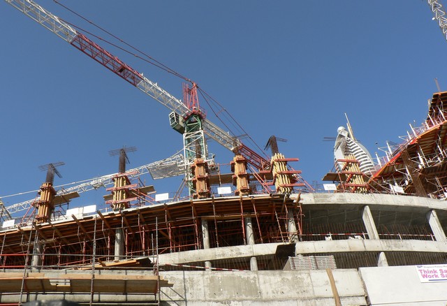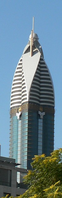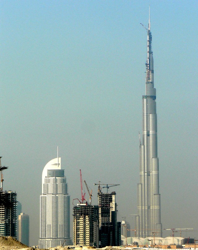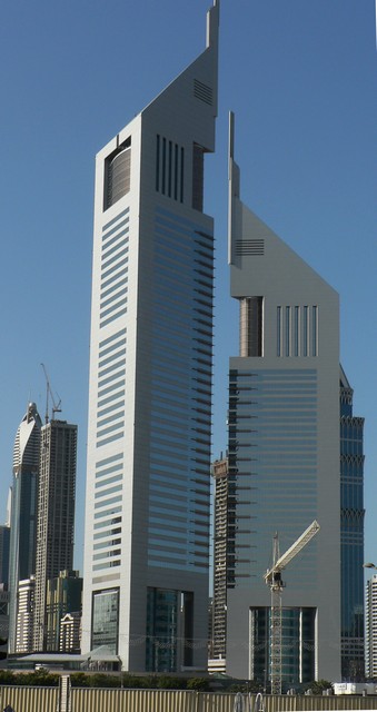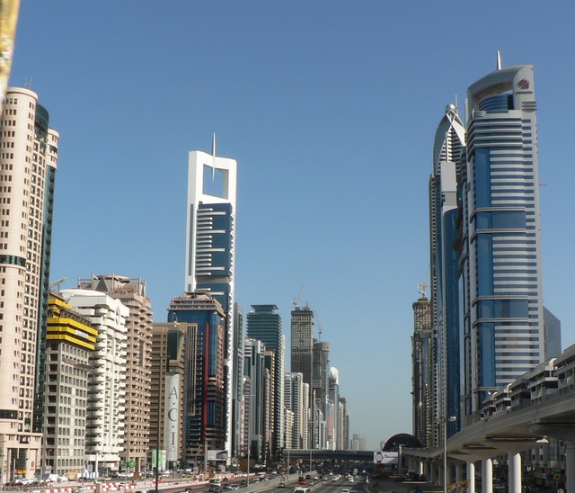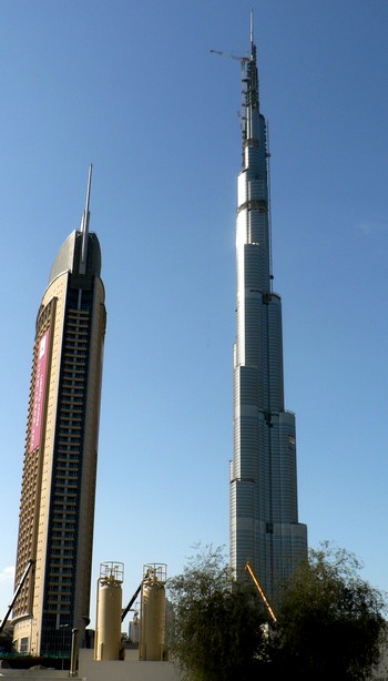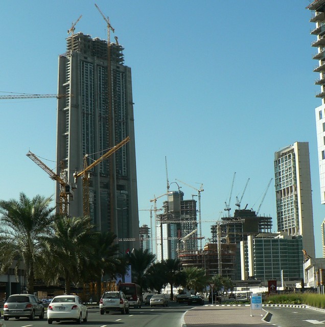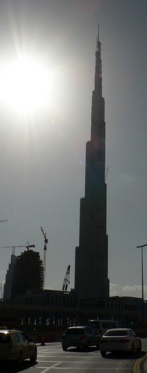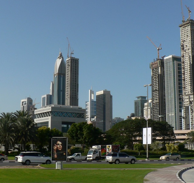 Nous profitons de l'atmosphère claire en ce jour plutôt frais (21°) pour retourner dans le quartier de Trade Center. C'est là que se trouvent de beaux gratte-ciels dont le plus haut du monde, le Burj Dubaï toujours en construction. Le quartier est plutôt fini par rapport au reste de Dubaï. On dit que 25% du parc mondial des grues se trouve à Dubaï mais c'est certainement vrai. Ici les architectes se laissent aller et les projets à venir vont faire de Dubaï une ville ultra-moderne.