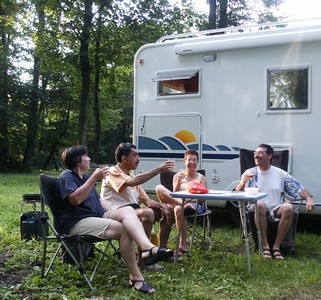 Jour 5 (pluie importante l'après-midi, température en hausse) : Etape de jonction Munich - Karlstejn (Tchéquie) sans grand intérêt. Nous retrouvons Roger et Janine avec qui nous allons faire un bout de chemin. Ils logent dans des bungalows proposés dans les campings
