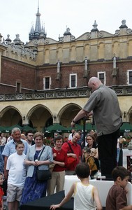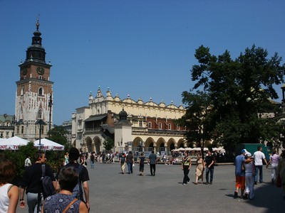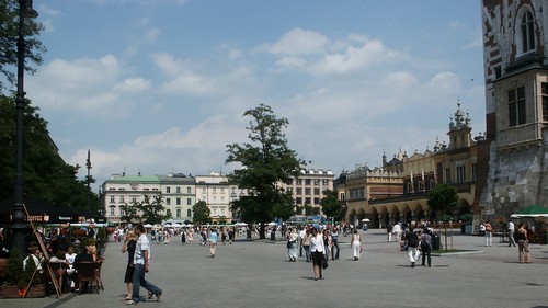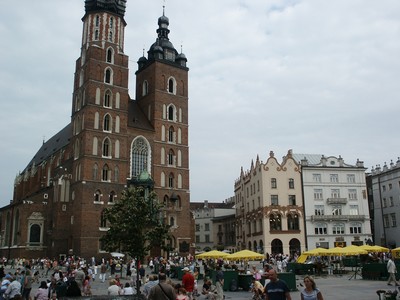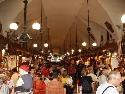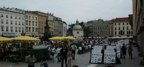 En ce dimanche elles sont noires de monde, tout comme la place du Marché (la plus vaste place médiévale d'Europe). On peut y entendre de la musique, y voir toutes sortes de saltimbanques, s'attabler à de très nombreux cafés et y rencontrer beaucoup de polonais et de touristes. La place est divisée par les anciennes halles qui abritent aujourd'hui un grand bazar. Un endroit très populaire et vraiment agréable.