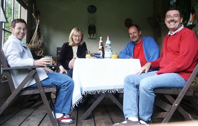 Jour 4 (pluie abondante toute la journée) : Nous fêtons en famille les 80 ans de la maman de Régine. C'est pour nous l'occasion de découvrir une fête familiale allemande. Nous avons passé la journée en compagnie de personnes très ouvertes, chaleureuses et faisant des efforts pour nous intégrer (tout le monde parlait le français ou l'anglais). Nous avons dégusté d'excellents gâteaux maison.