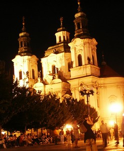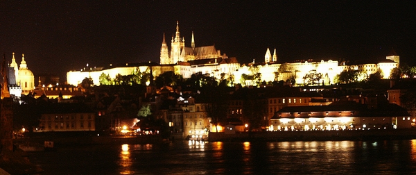 Le soir nous passons une soirée très agréable dans le vieux Prague, avec repas sur la terrasse d'un des nombreux restaurants. Prague de nuit est superbe, même si les couleurs originelles et multiples des bâtiments sont un peu uniformisées par les éclairages.
