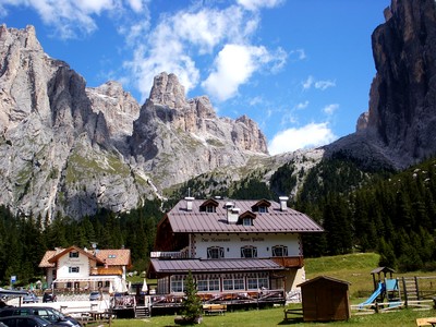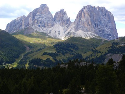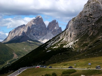Hier soir nous avons rencontré deux couples de français très sympathiques avec qui nous avons discuté un bon moment et ils nous ont indiqué les principaux sites du coin à visiter (nous sommes partis sans aucune documentation sur l'Italie qui n'était pas vraiment notre destination principale). Grâce à eux (qu'ils en soient remerciés), nous allons passer une superbe journée dans les Dolomites, passant de cols en cols et découvrant à chaque fois des paysages plus beaux les uns que les autres. On en oublie même le monde qui balade avec vous (c'est une région très touristique). Les villages traversés sont également très typique (très autrichiens avec les mêmes remarques qu'hier).