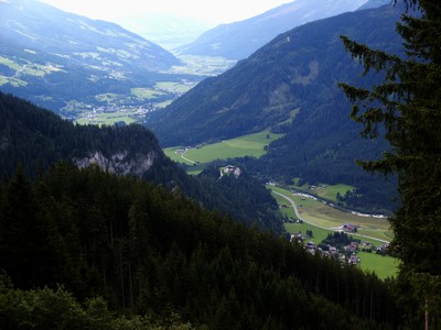 Ce mauvais temps nous empêche de profiter du Tyrol. Nous sommes censés admirer des sommets enneigés tout au long du chemin entre Kaprun et Innsbruck mais la pluie et les nuages sont là ! Nous traversons de superbes villages aux chalets recouverts de fleurs, aux églises typiques avec leur clocher très haut et pointu, mais impossible de faire des photos, mon appareil n'est pas étanche et se balader sous la pluie n'est pas notre tasse de thé ! Chaque vallée transversale s'ouvre en principe sur un glacier, on en aperçoit parfois quelques m² !