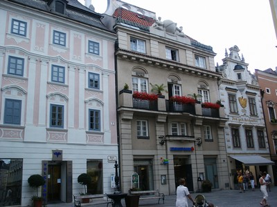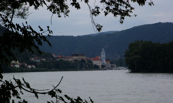 Jour 25 - 31 juillet - Pluie et fraîcheur (20°). Nous quittons Vienne pour remonter la vallée du Danube. Très belle région viticole entre Krems et Melk. Le Danube serpente entre les collines, les villages ont parfois des airs alsaciens, les vignes remontent le long des coteaux, des châteaux surplombent ça et la le grand fleuve. La couleur des maisons égaie un peu l'atmosphère. Dommage de voir tout ça sous la pluie (d'où peu de photos) !!! Un peu moins joli après Melk mais finissons sur une beau village (Grein) où nous passerons la nuit.