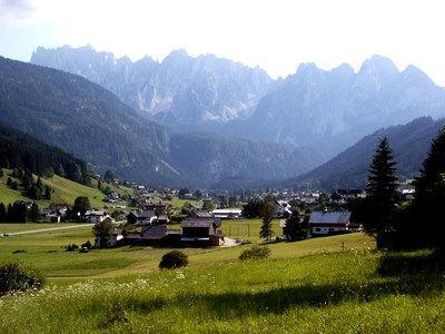 Nous laissons le camping-car au camping puis allons explorer avec le scooter la vallée de Gosau, dominée par nos premiers sommets à 3000m. Un déplacement qui vaut le coup d'œil !
