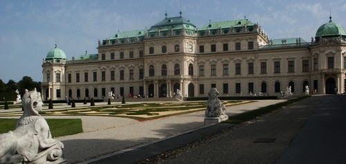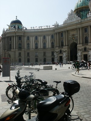 Jour 24 - 30 juillet - Temps très chaud / Poursuite de la visite de Vienne. Une fois de plus le scooter nous rend de fiers services grâce à l'extrême mobilité et la facilité de stationnement qu'il nous procure. Les monuments de Vienne sont relativement concentrés sur le centre ville mais d'autres sont plus éloignés et nous pouvons même explorer la proche banlieue. Et par cette chaleur lourde, se déplacer en scooter au lieu de marcher est un plaisir sans nom. Première surprise, la ville n'est pas construite autour du Danube qui la traverse bien mais de façon pratiquement inaperçue ! Les Habsbourg avaient beaucoup de moyens et la ville est façonnée à leur image. Les palais, les musées, les belles places se succèdent. Le tout dans un charme un peu froid (on est loin des palais colorés italiens) et assez minéral. Ici tout est propre, rien ne dépasse d'un millimètre (c'est une des différences avec Prague et Budapest. L'autre étant l'importance du patrimoine). Tout est somptueux (un peu trop peut-être). Gros désagrément pour les visiteurs de l'été 2005, la ville est en chantier. Nombre de rues, de palais, d'églises, de châteaux, de bâtiments sont en travaux et cela gâche un peu le plaisir. Tout sera encore plus beau et plus propre l'année prochaine ! Ces grands travaux font que je n'ai pas pris beaucoup de photos pour illustrer cette visite. En voici quand même quelques unes.
