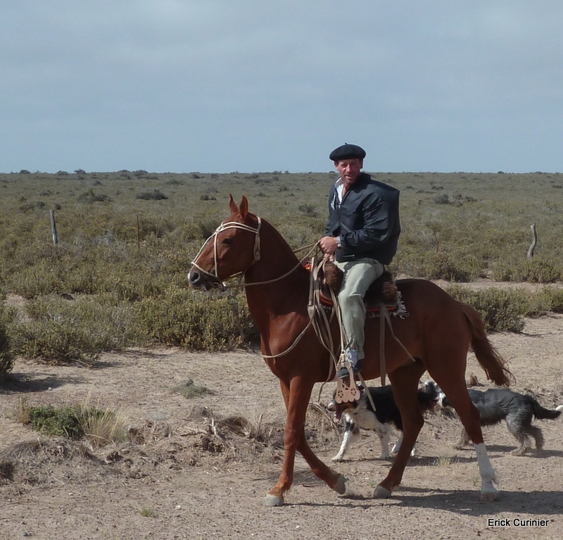 paysage semi-désertique. Au milieu de nulle part surgit un gaucho à