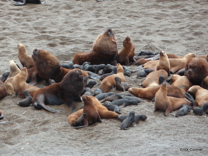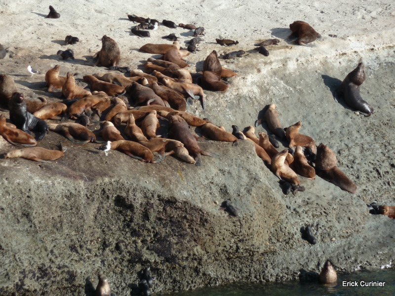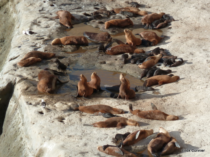 de nombreux lions de mer. Les mâles s'adonnent à leurs activités