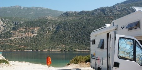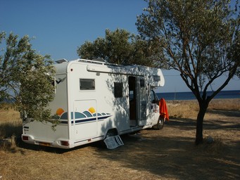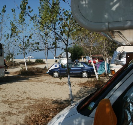 Pamucak (Ephèse) * : Se parquer le long de la plage est très difficile (ensablement garanti). Nous nous replions sur l'un des campings en bord de plage. Très ombragé. 17 millions la nuit (10€) avec électricité.