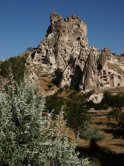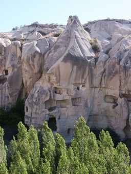 Détail d'un pigeonnierOn commence à retrouver des paysages au goût de déjà vus. La vallée de Drevent est belle à traverser mais idem que pour Zelve. De plus ce n'est pas la bonne heure, tout est écrasé par la lumière.