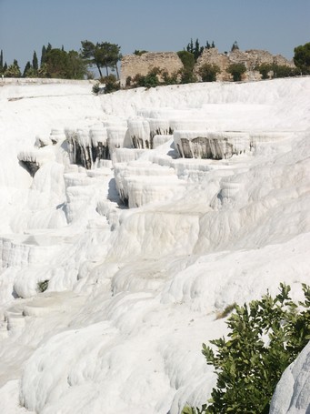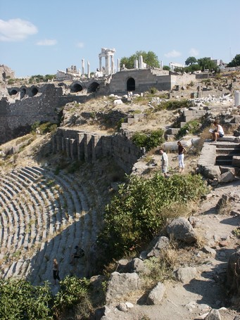 Nous préférons continuer en suivant la côte qui est magnifique jusqu'à YeniFoça. Ensuite c'est un paysage d'apocalypse que nous traversons (immense zone industrielle, raffineries, ferrailleurs, centrale thermique etc...) avant de rejoindre Bergama. En route nous nous sommes arrêtés dans un petit restaurant pour manger des mantis (sorte de raviolis recouverts de yaourt et de paprika). Nous n'avions pas encore eu l'occasion de goûter ce plat qui est succulent. Nous sommes servis par un jeune garçon qui ne ménage pas sa peine et est ravi de nous dire quelques mots en français que son patron lui apprend au fur et à mesure du service. Ce patron avait travaillé 6 ans à Caen et parlait parfaitement le français. Au moment de partir il nous a offert un sac plein de tomates et de poivrons de son jardin. Vraiment les Turcs ont le sens de l'hospitalité !