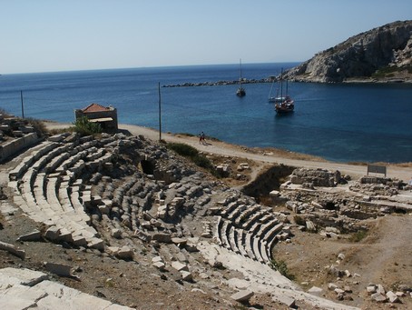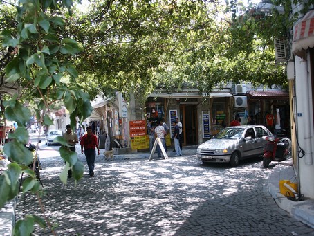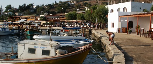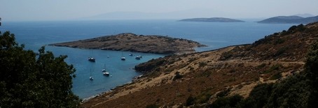 Nous décidons, malgré la mauvaise route et la forte circulation rencontrée ce jour de poursuivre notre chemin jusqu'à Assos. La route est pénible mais nous terminons par une route côtière non marquée sur notre carte, de bonne qualité (bien meilleure que la nationale) et qui nous conduit directement à Assos ou plus précisément à la plage de Kadirga à 4 km d'Assos. Là nous trouvons un coin tranquille au bord d'une belle plage de galets avec une eau très propre, le tout face à l'île grecque de Lesbos. Cela fera une belle étape. Le soir nous prenons la direction d'Assos, magnifique petit port niché au pied d'une falaise et aux vielles maisons de pierres. Heureusement que nous y sommes allés en scooter car l'accès en camping-car est impossible (parking / camping à mi chemin en direction du port puis y aller à pied). Soirée resto sympa (nourriture assez quelconque tout de même)